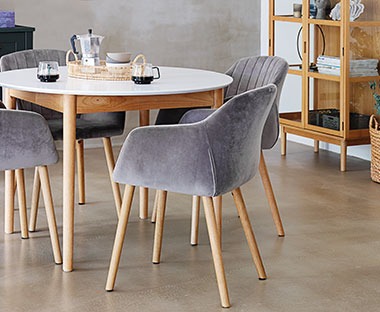 Prinde un loc la masă sau mai adaugă un scaun! Oferă-i sufrageriei tale un motiv pentru a-i aduna pe toți în jurul mesei la cină - asigură-te doar că stau pe un scaun confortabil care arată minunat! Descoperă o gamă variată de scaune de bucătărie și alege-le pe cele care îți plac: un scaun tapițat, din piele, răchită sau lemn masiv, cu design scandinav, modern, sau clasic și retro. Simte-te bine la masă cu gama noastră extinsă de scaune rotunde sau tapițate, cu diferite modele sau ergonomice, rustice, vintage sau elegante, pentru interioare frumoase, la prețuri accesibile. Adaugă și o masă de dining sau o băncuță pentru un set complet.