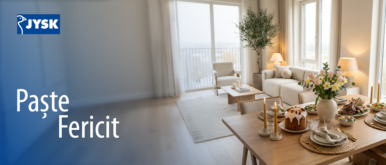 Cu ocazia sărbătorilor de Paște, dorim să vă informăm din timp despre orarul de lucru al magazinelor fizice JYSK și magazinului online jysk.md, precum și despre disponibilitatea serviciilor Livrarea și Click&Collect.