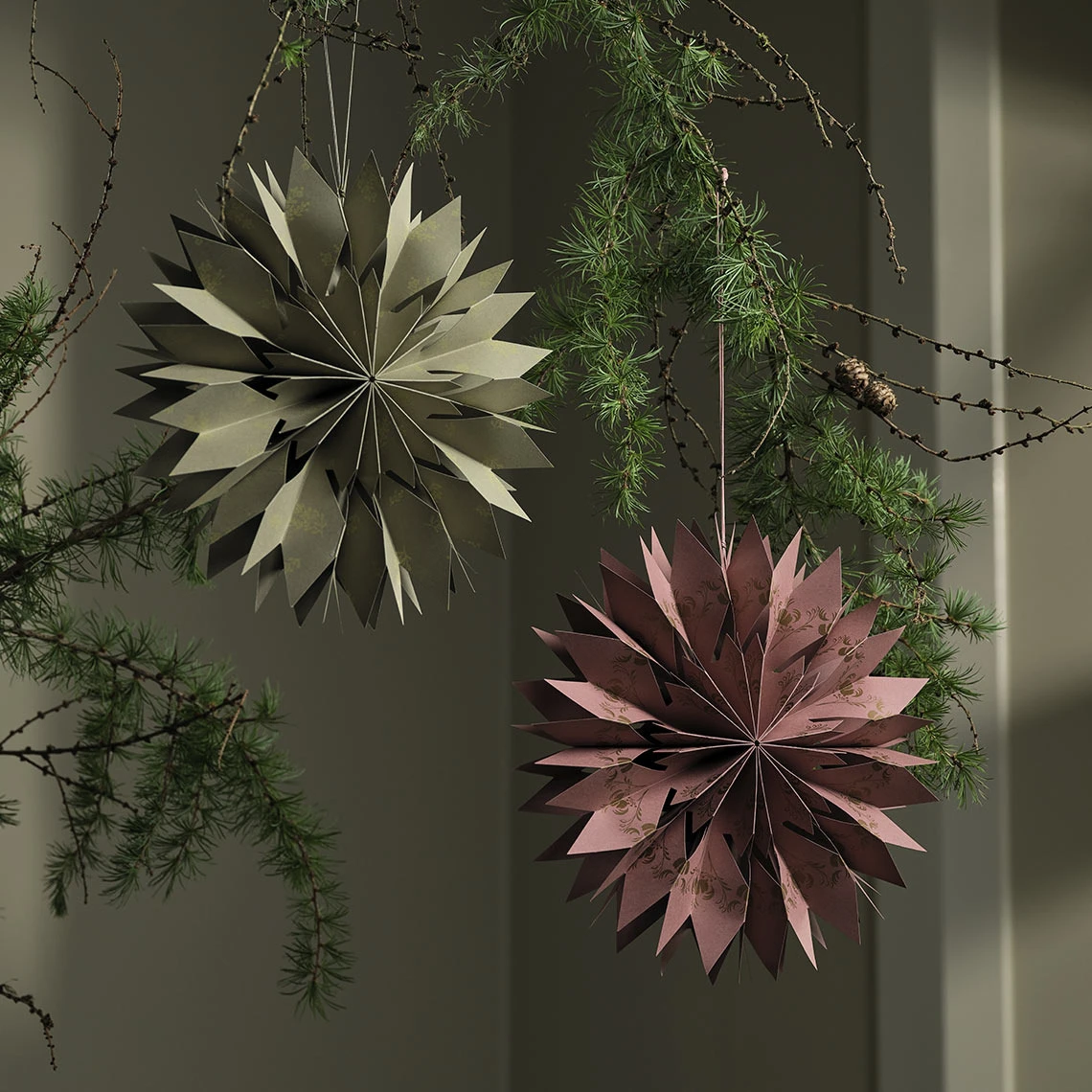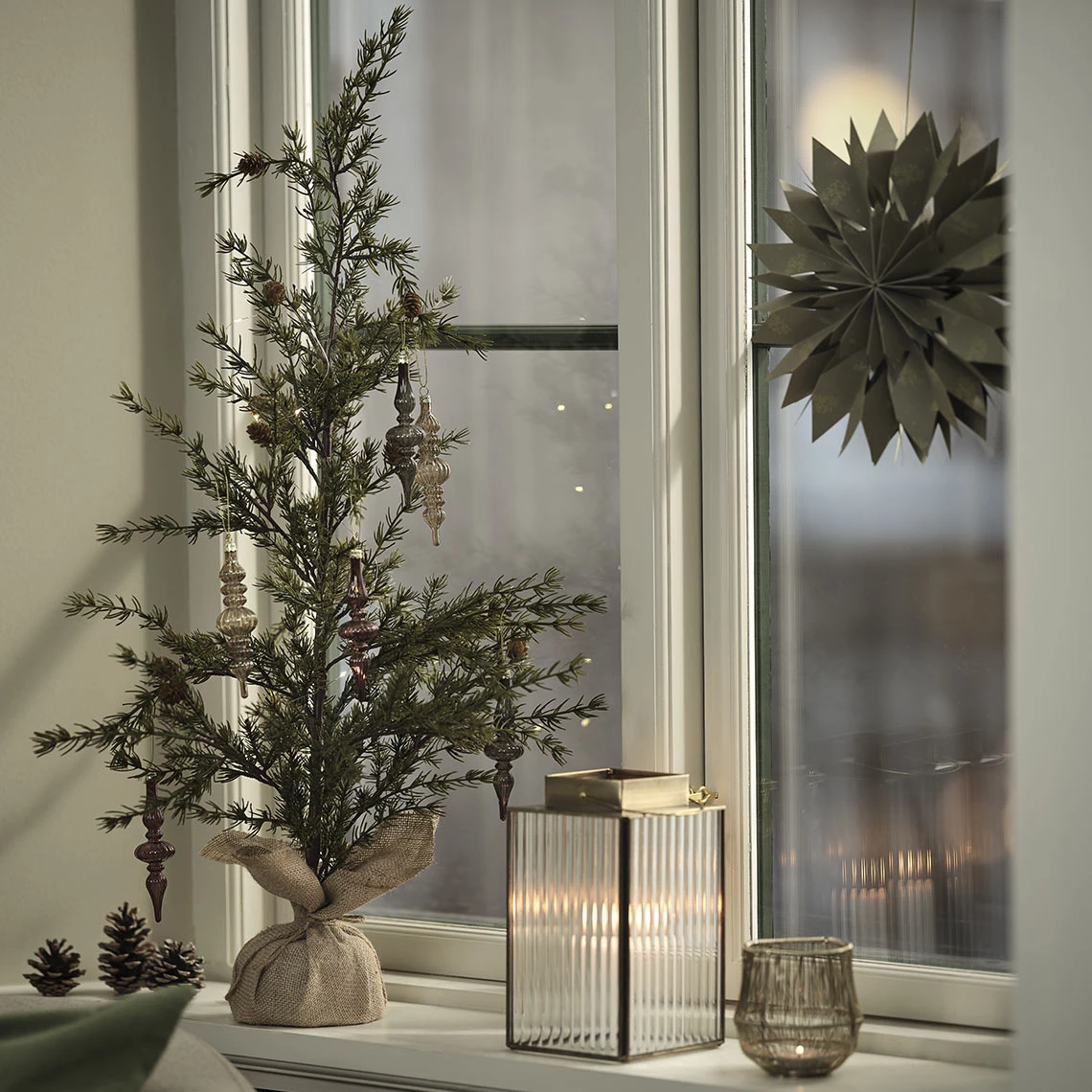 Cu noile stele din hârtie HYRM poți decora ferestrele, iar bradul de Crăciun artificial FENRIR oferă o senzație de calm în locuința ta.