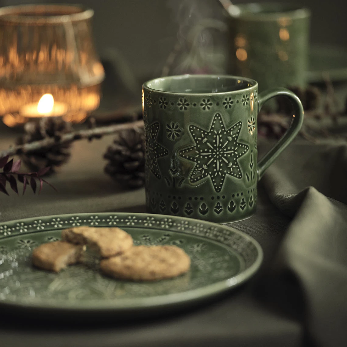 Sortimentul nostru de Crăciun din acest an se inspiră din rădăcinile noastre scandinave. Inspirată de nuanța verde pământie din pădurile de pini nordici, noua colecție de Crăciun Nordic Mood va aduce cu siguranță o atmosferă magică în casa ta.