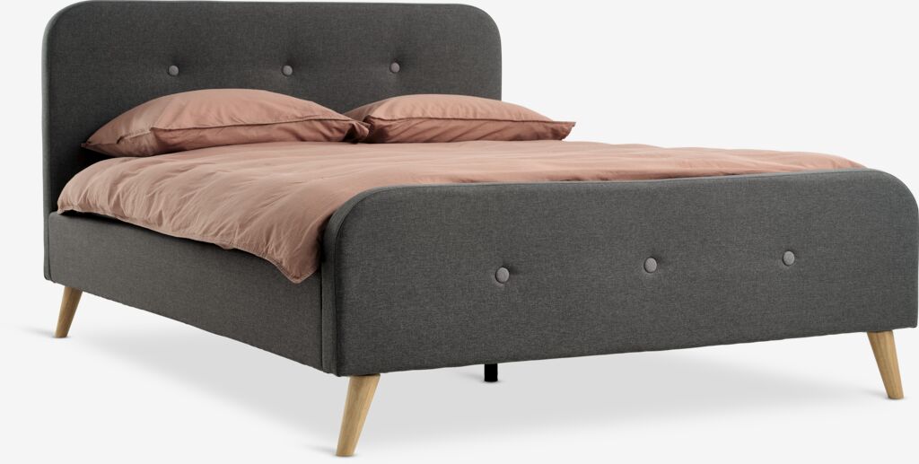 Material textil și lemn masiv. I se potrivesc toate tipurile de saltele 160x200 cm. Excl. somieră și saltea. 174x216x101 cm