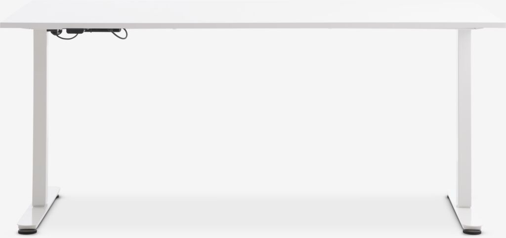 Furnir decorativ și metal. Birou electric, cu înălțime și picioare reglabile. Biroul este testat pentru utilizarea la birou și îndeplinește cerințele stabilite în standardele EN527-1-2-3. 80x160x68-119 cm