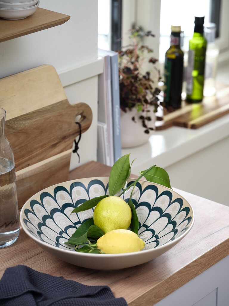 Bol din ceramică cu o formă rotundă clasică și un model exotic în culori calde. Acest bol mare este ideal pentru o salată sau doar ca element decorativ. Se poate spăla la mașina de spălat vase. Ø30x9 cm
