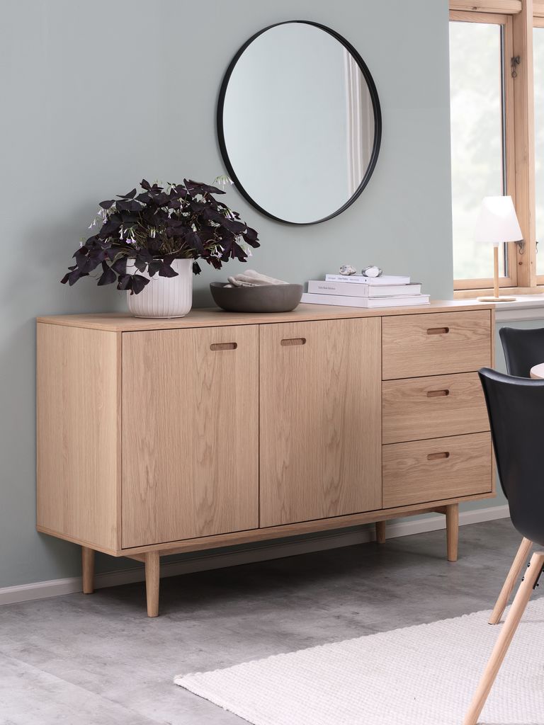 Faţă: Furnir de stejar, PAL, Partea de jos: MDF, Furnir de stejar, Laterale: Furnir de stejar, PAL, Spate: Furnir de stejar, PAL