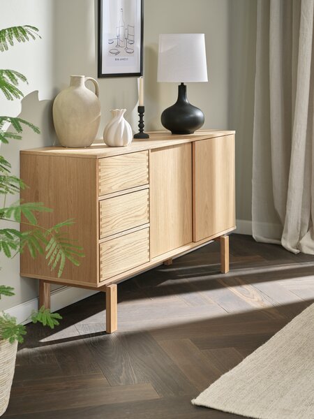 Faţă: Furnir de stejar, PAL, Partea de jos: MDF, Melamină, Laterale: Melamină, PAL, Spate: Melamină, PAL