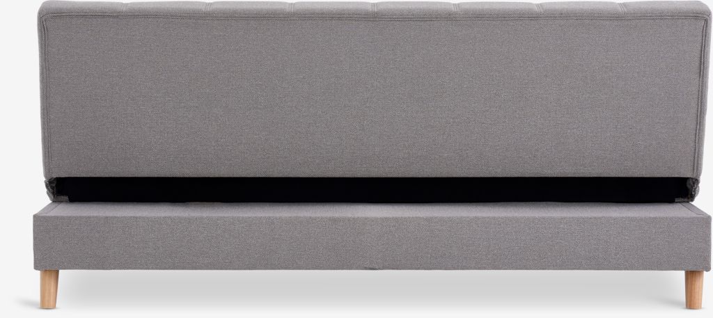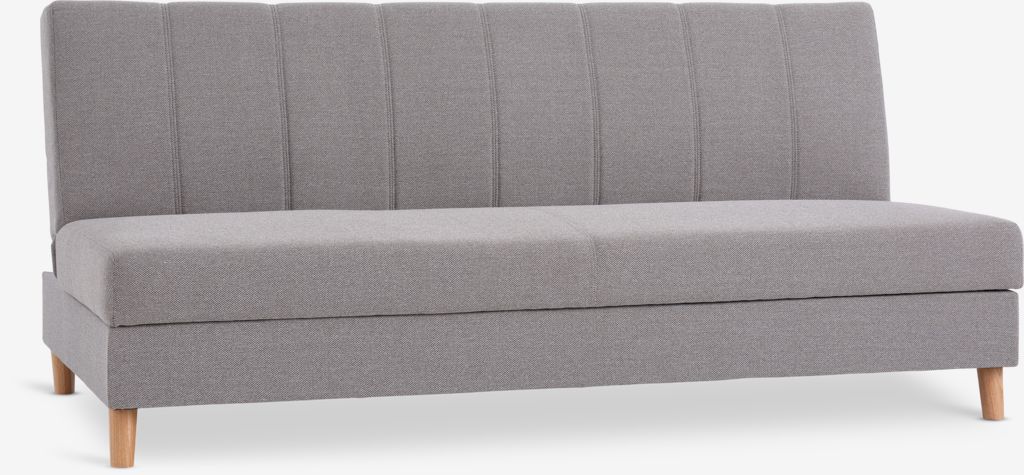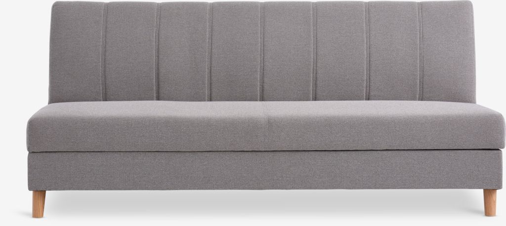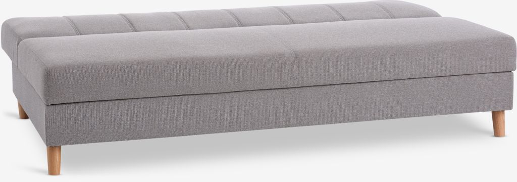 Canapea cu 3 locuri din material textil. Canapeaua se întinde ușor într-un pat. Perne din spumă. Picioare din lemn masiv. Cu spațiu de depozitare. Suprafață extinsă 114x192 cm. 192x85x97 cm