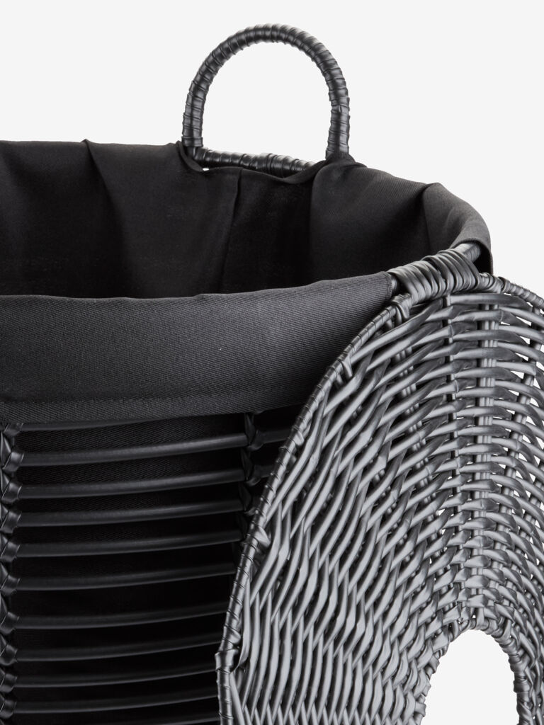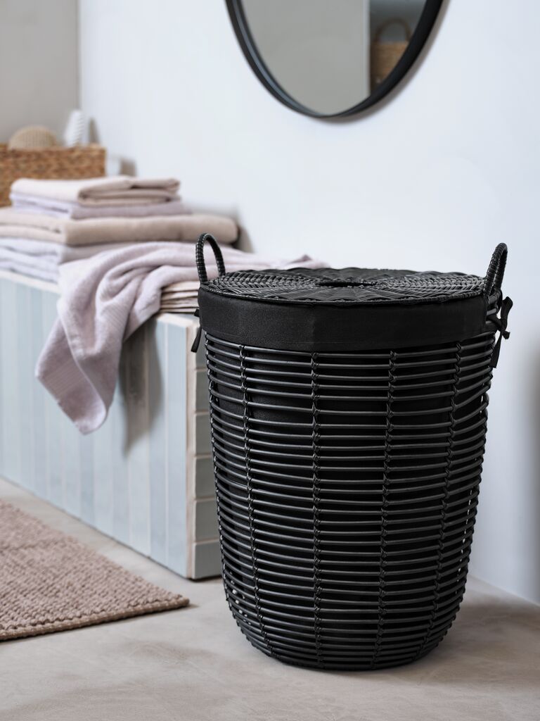 Coș de rufe cu design negru împletit și căptușeală asortată detașabilă. Un capac practic ascunde rufele, iar două mânere facilitează transportarea. Ø40 x H56 cm