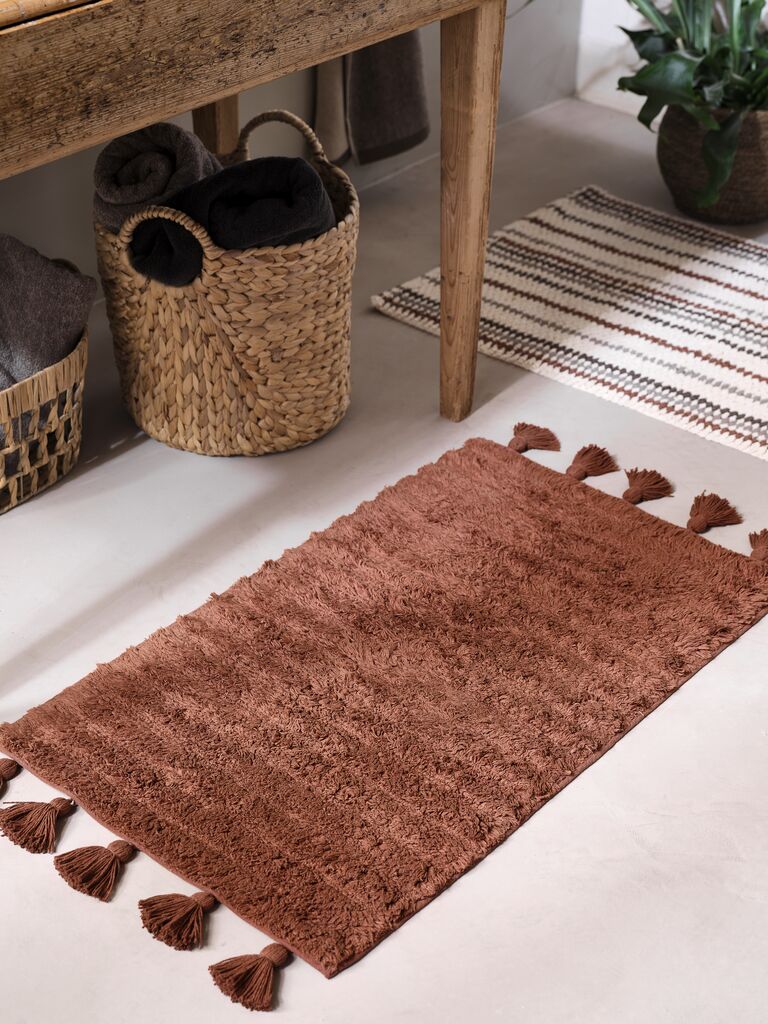 Spălați întotdeauna separat, Notă: Din cauza structurii covorașului de baie, la spălare s-ar putea desprinde fire. Dacă se întâmplă acest lucru, tăiați firele desprinse fără să trageți de ele. Înlăturarea acestor fire nu va deteriora produsul și nu va lăsa urme vizibile., Scuturați materialul și agă