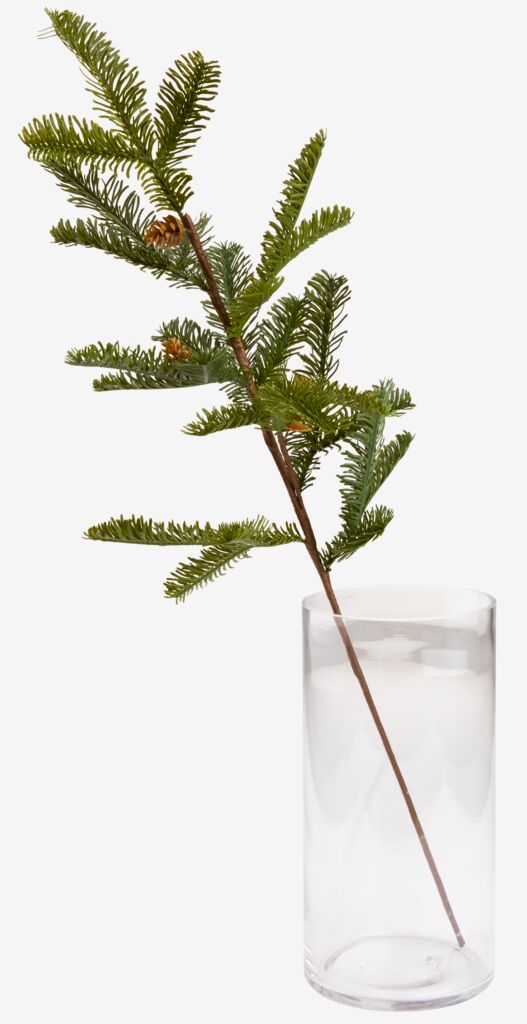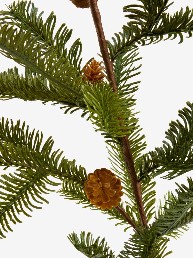 Crenguță artificială verde, decorată cu conuri mici de pin. Tulpina înaltă poate fi așezată într-o vază pentru a crea o decorațiune de Crăciun simplă și festivă. Ø23x80 cm