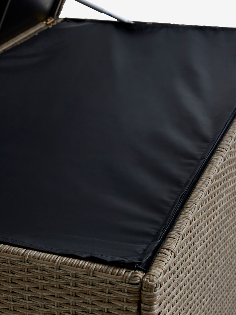 Cutie de depozitare din oțel și poliratan. Cu capac hidraulic ușor de folosit. Incl. husă impermeabilă pentru perne de grădină. Rezistentă la îngheț. 155x95x81 cm
