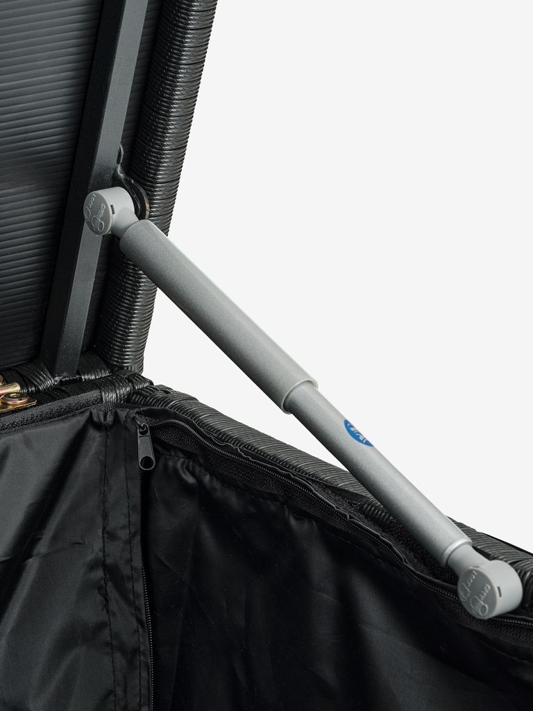Cutie pentru depozitarea pernelor din oțel și poliratan. Cu capac hidraulic ușor de folosit, roți și mâner. 133x64x55 cm