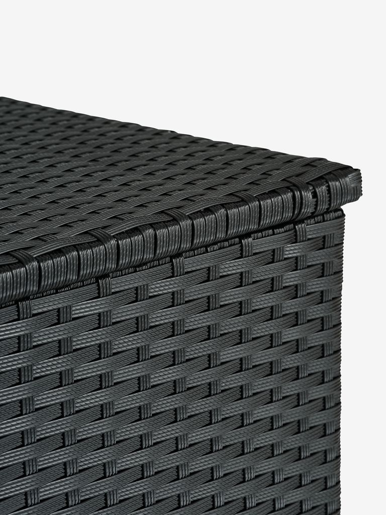 Cutie de depozitare din oțel și poliratan. Cu capac hidraulic ușor de folosit. Incl. husă impermeabilă pentru perne de grădină. Rezistentă la îngheț. 155x95x81 cm