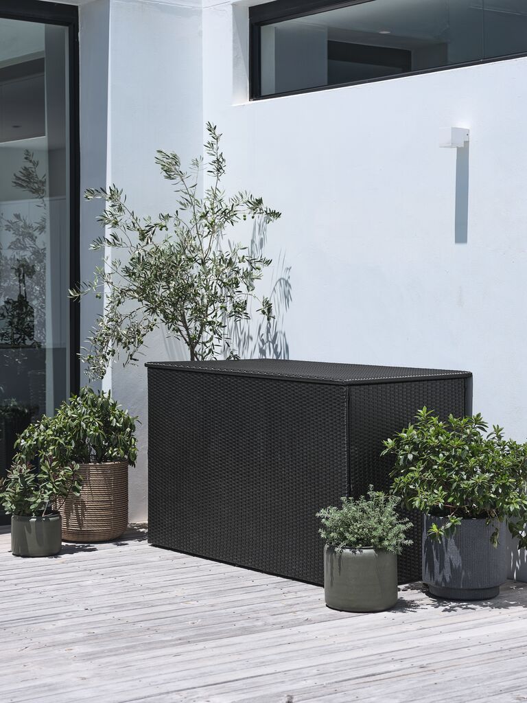 Cutie pentru depozitarea pernelor din plastic impermeabil cu protecție UV (85% reciclat). Cu mâner. Rezistentă la îngheț. 128x59x54 cm