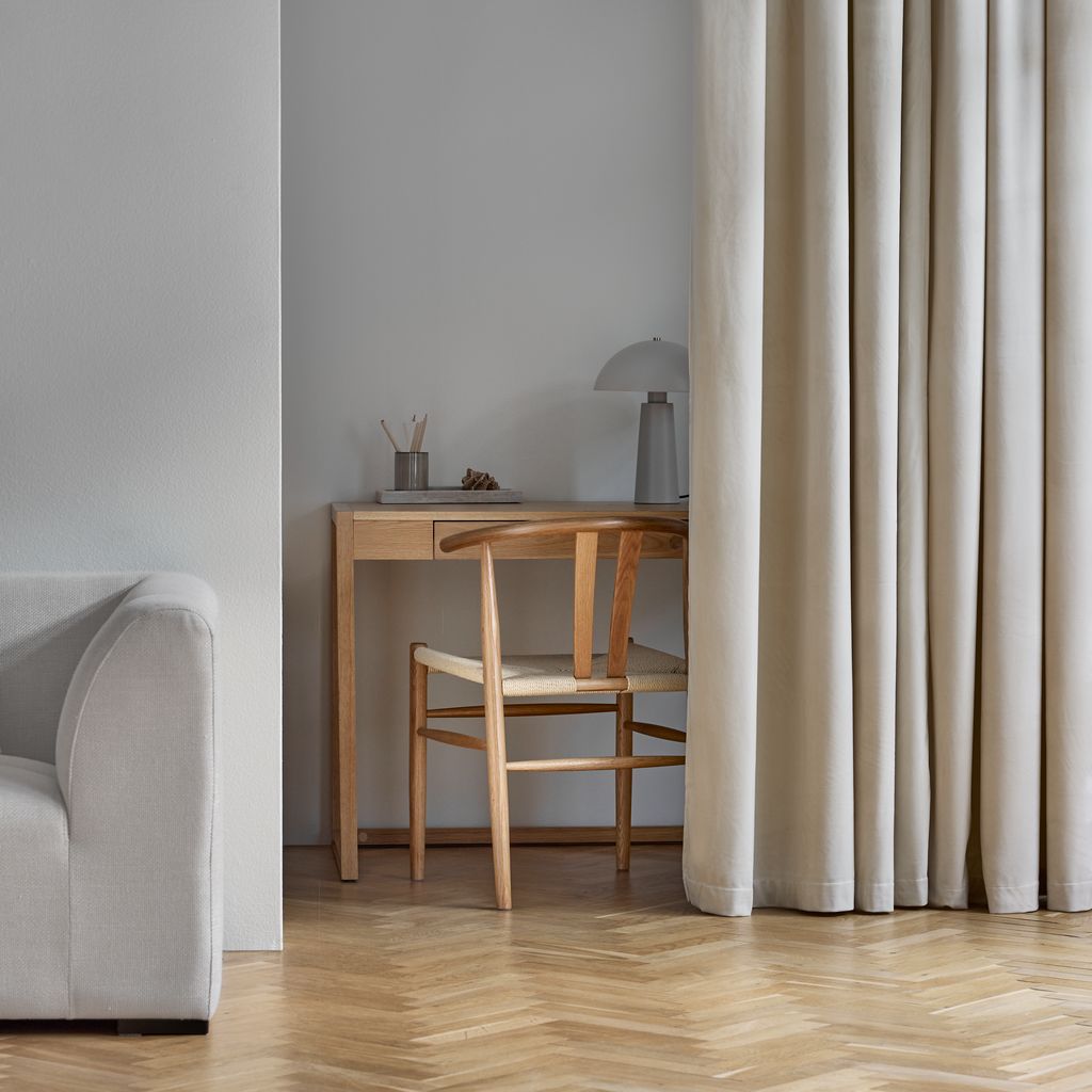 Perdeaua poate fi scurtată cu ușurință cu un fier de călcat, o cârpă și banda pentru tiv inclusă