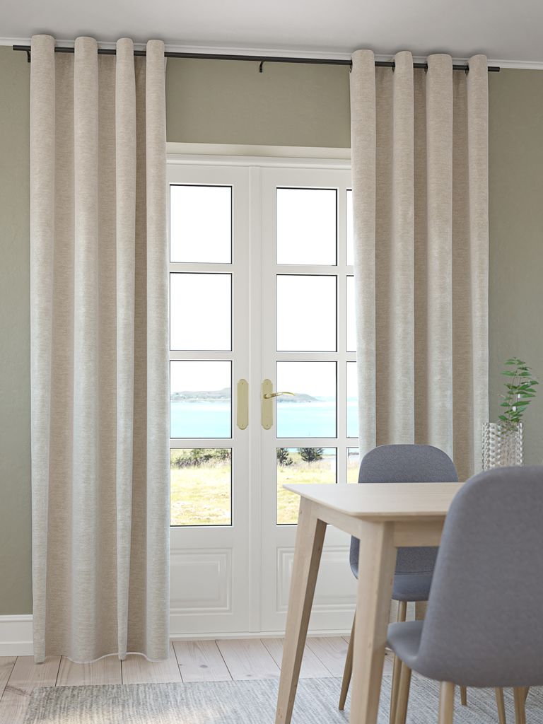 Perdeaua poate fi scurtată cu ușurință cu un fier de călcat, o cârpă și banda pentru tiv inclusă