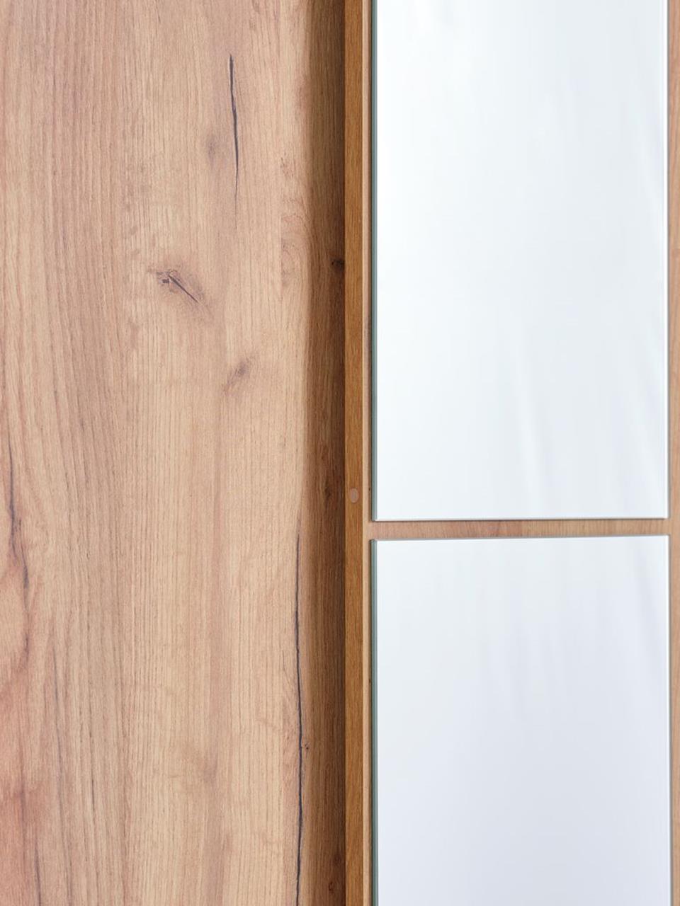 1 oglindă, 1 bară pentru umerașe 6 rafturi, 2 uși glisante