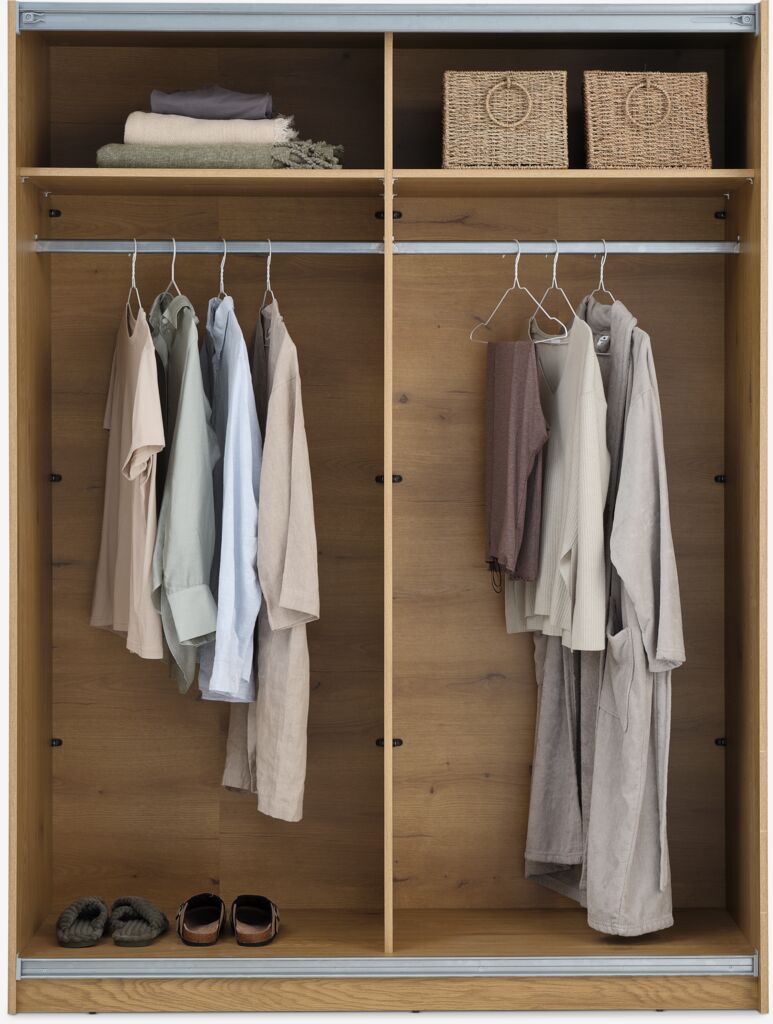 1 oglindă, 2 bare pentru umerașe, 2 rafturi
