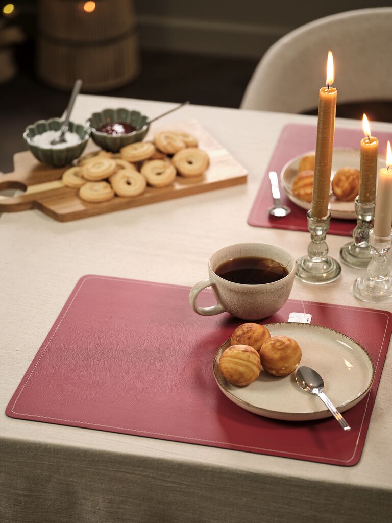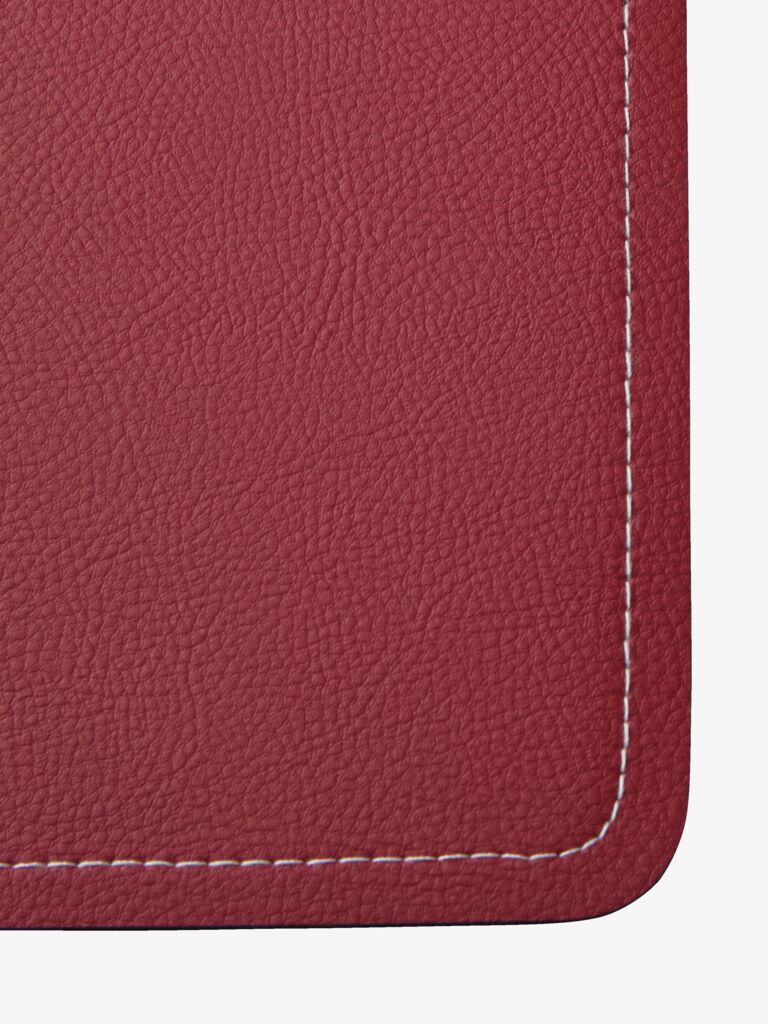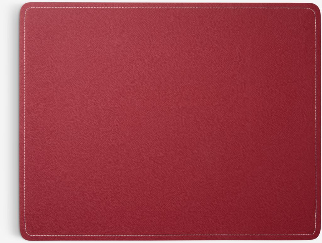 Șervet de masă din imitație de piele, cu un design reversibil ce prezintă o parte roșie și una verde. Întoarceți șervetul de masă pentru a alege culoarea care se potrivește aranjamentului mesei. Ajută la protejarea mesei de lichidele vărsate și se poate curăța cu ușurință prin ștergere. 33x42 cm