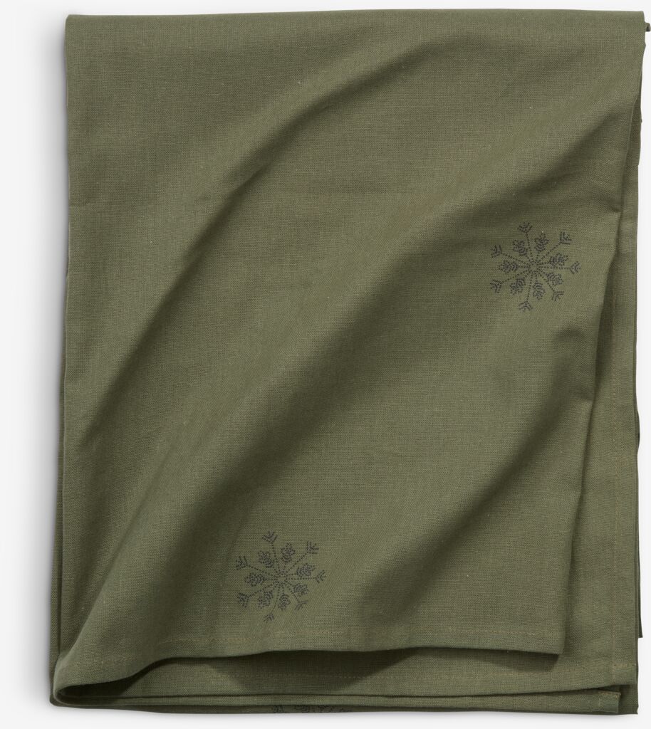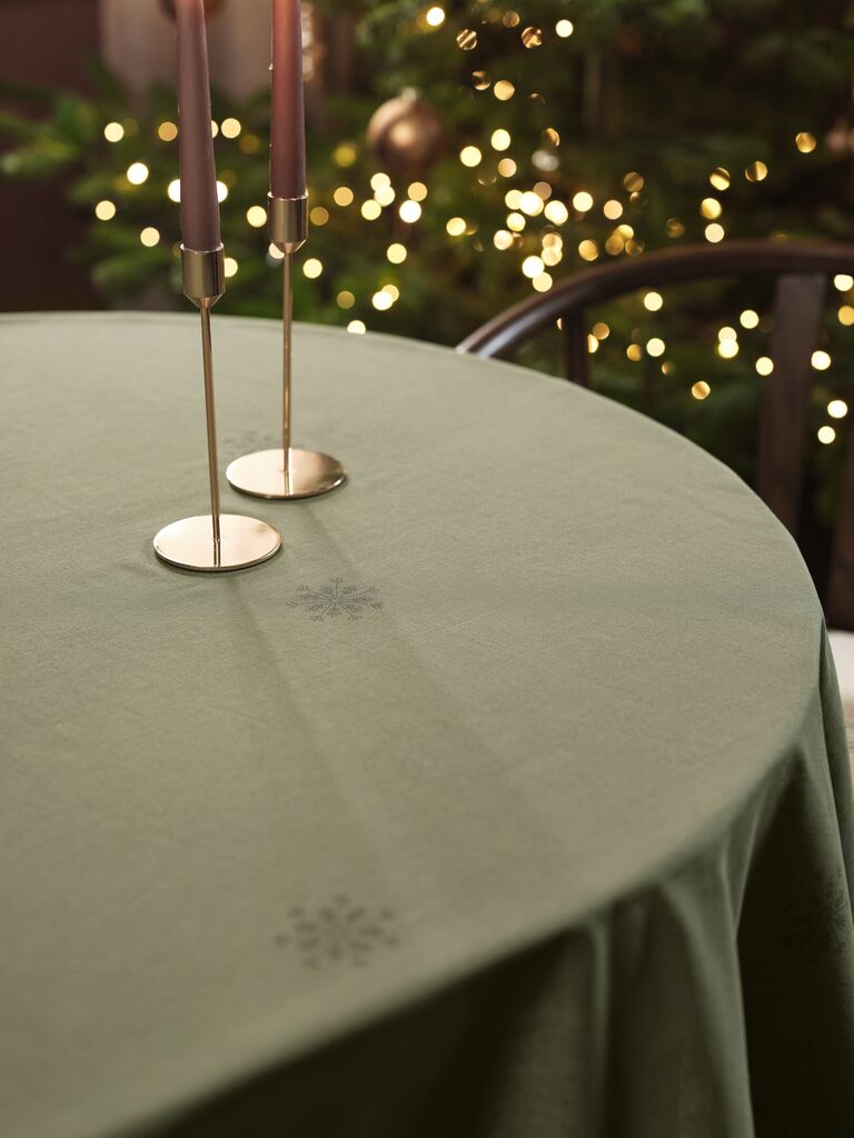 Față de masă fabricată din 100% bumbac. Culoarea sa verde și modelul subtil cu fulgi de nea creează o atmosferă caldă și primitoare pentru masa dumneavoastră de Crăciun. 140x240 cm