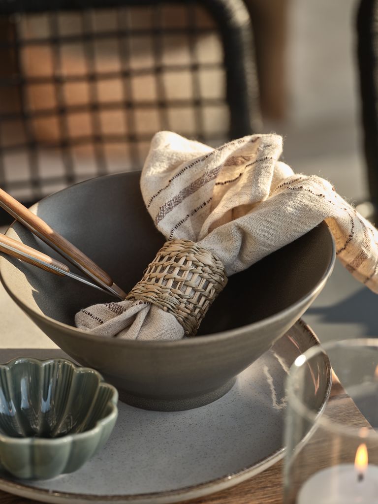 Farfurie din ceramică într-o culoare subtilă de gri. Designul său minimalist se potrivește cu diverse aranjamente de masă, de la mese de zi cu zi până la ocazii speciale. Se poate spăla la mașina de spălat vase. Ø27 cm