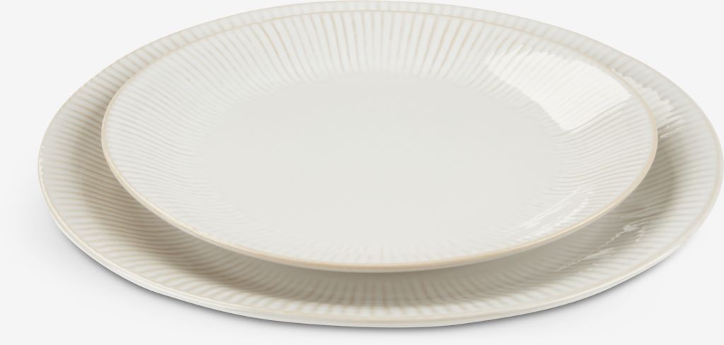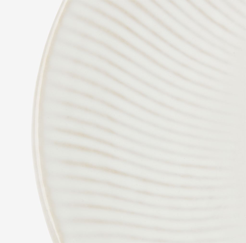 Farfurie din ceramică albă cu un design clasic canelat. Potrivită atât pentru mesele de zi cu zi, cât și pentru ocazii speciale, având un aspect simplu, dar elegant. Se poate spăla la mașina de spălat vase. Ø27 cm