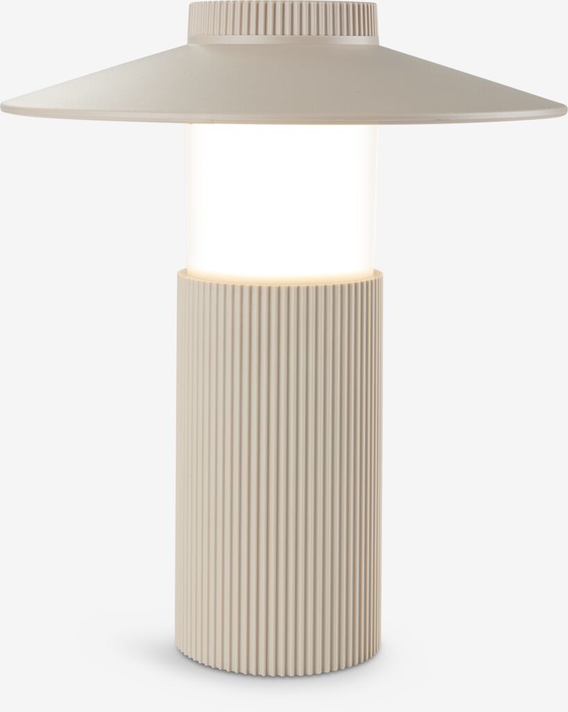 Veioză cu baterie cu un design modern, cu o bază reiată de culoarea nisipului. Designul fără fir vă permite să o așezați oriunde, creând o atmosferă plăcută la interior sau la exterior. Include, de asemenea, o funcție practică de temporizator încorporată. Ø21 x H25 cm