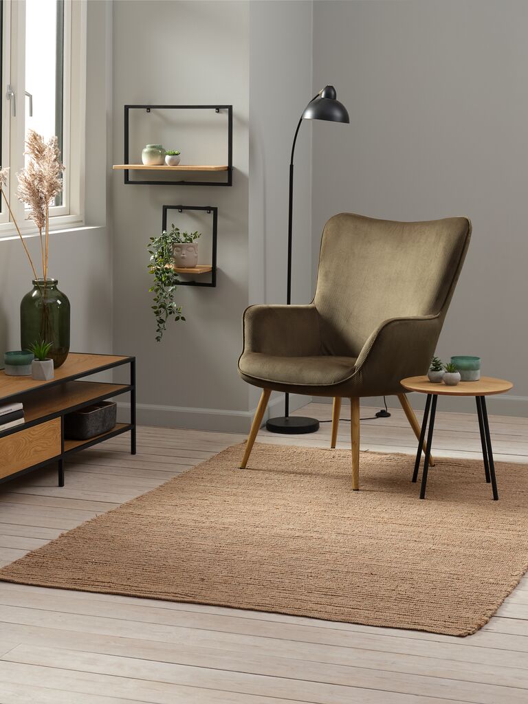 Fotoliu HUNDESTED reiat verde/stejar natur