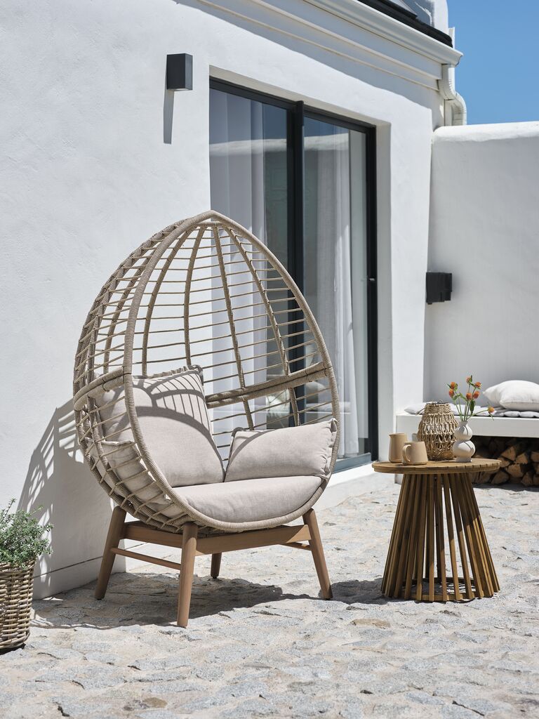 Scaun de terasă din aluminiu și poliratan. Incl. pernă cu husă rezistentă, țesută. 70x85x80 cm