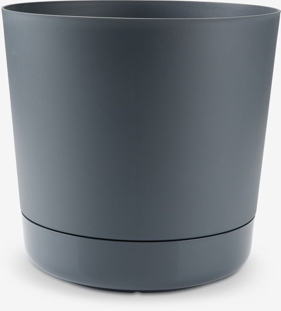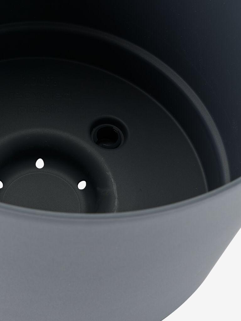 Ghiveci din plastic durabil, rezistent la îngheț (100% reciclată), de culoare gri antracit. Acesta are un rezervor de apă integrat, care facilitează îngrijirea plantelor. Ø28 x H28 cm