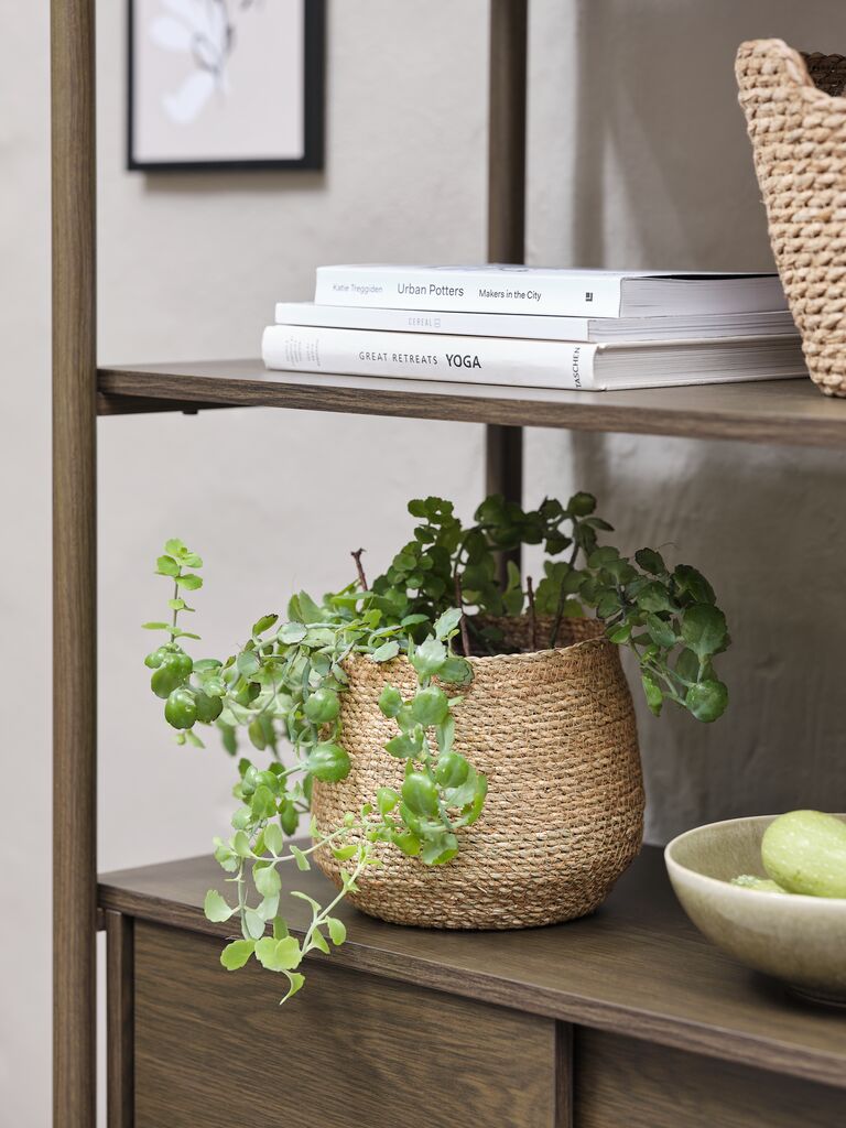 Ghiveci cu un design natural din iarbă de mare împletită, care adaugă o notă rustică decorului dumneavoastră. Dispune de o căptușeală practică din polietilenă pentru a proteja materialul, fiind ideal pentru expunerea plantelor de interior. Ø20 x H17 cm