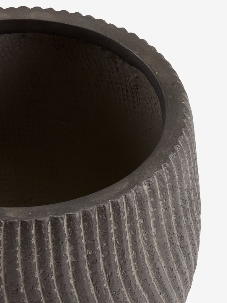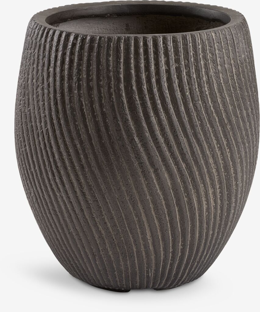 Ghiveci cu o textură decorativă, ondulată, cu finisaj maro închis. Realizat din fibră de lut rezistentă la îngheț, ghiveciul este ideal pentru utilizare în exterior și include o gaură practică de scurgere. Ø31 x H34 cm