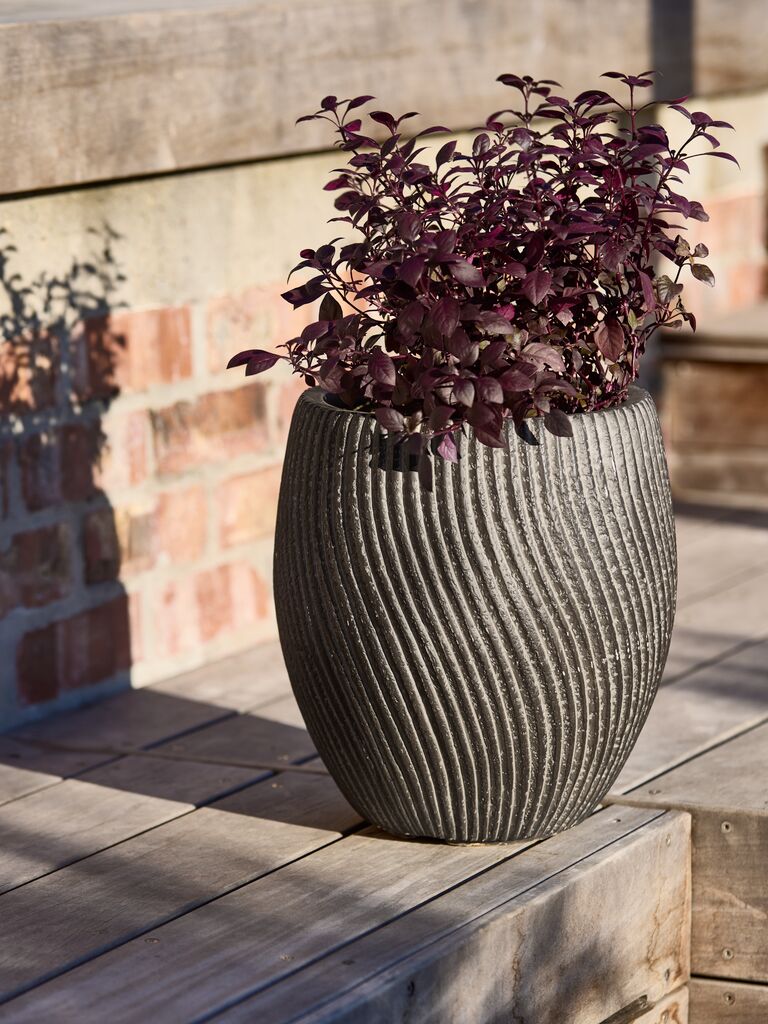 Ghiveci cu un design elegant, cu striații și un finisaj negru simplu. Fabricat din plastic ușor, ghiveciul este ușor de poziționat în grădină sau pe balcon. Se poate face cu ușurință o gaură de scurgere. Ø30 x H38 cm
