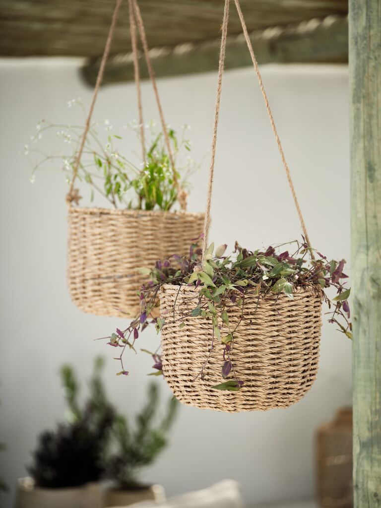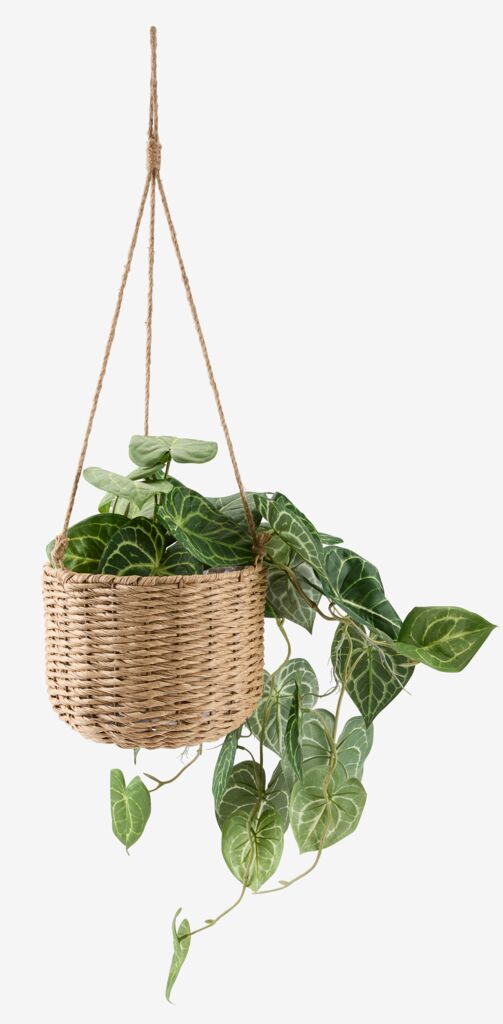 Ghiveci suspendat cu un design împletit, de culoare naturală. Fabricat din sfoară de iută și poliratan, este rezistent la îngheț și potrivit pentru a crea un spațiu verde, de exemplu, pe balconul dumneavoastră. Ø24 x H18 cm