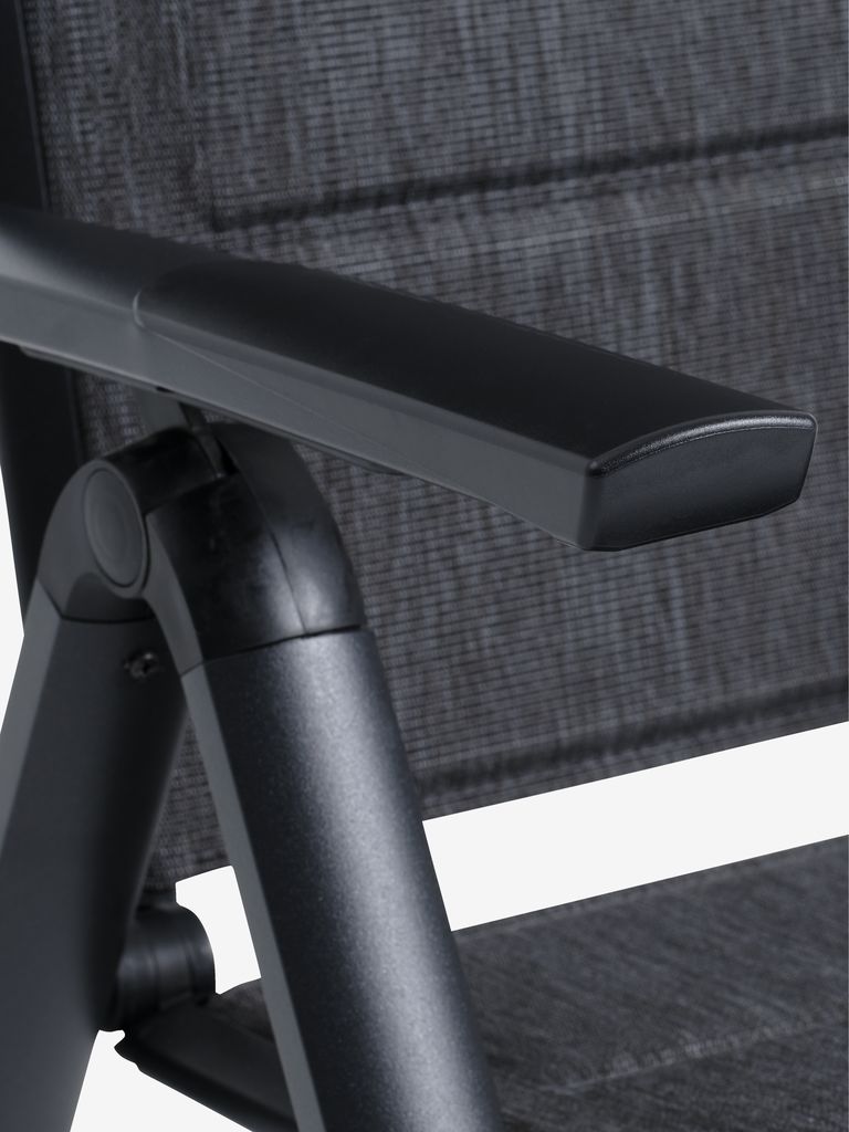 Set de grădină cu 4 locuri. Masă: Aluminiu și DURAWOOD® lemn compozit . 92x160x74 cm Scaun: Aluminiu, textilină și căptușeală din spumă cu uscare rapidă. 6 poziții. Pliabil.