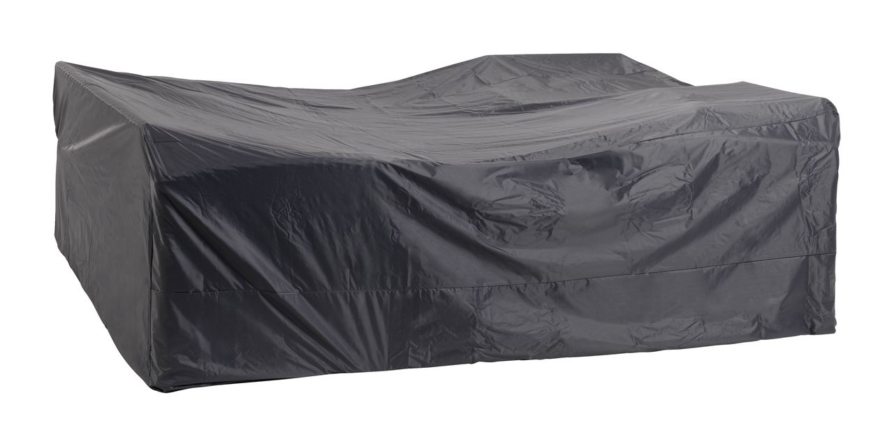 Husă impermeabilă pentru mobilier de grădină din poliester gri închis. Această husă rezistentă la îngheț îți protejează mobilierul de exterior de condițiile meteorologice aspre. Ideală pentru a menține setul de grădină curat și uscat pe tot parcursul anului. 210x250x90 cm