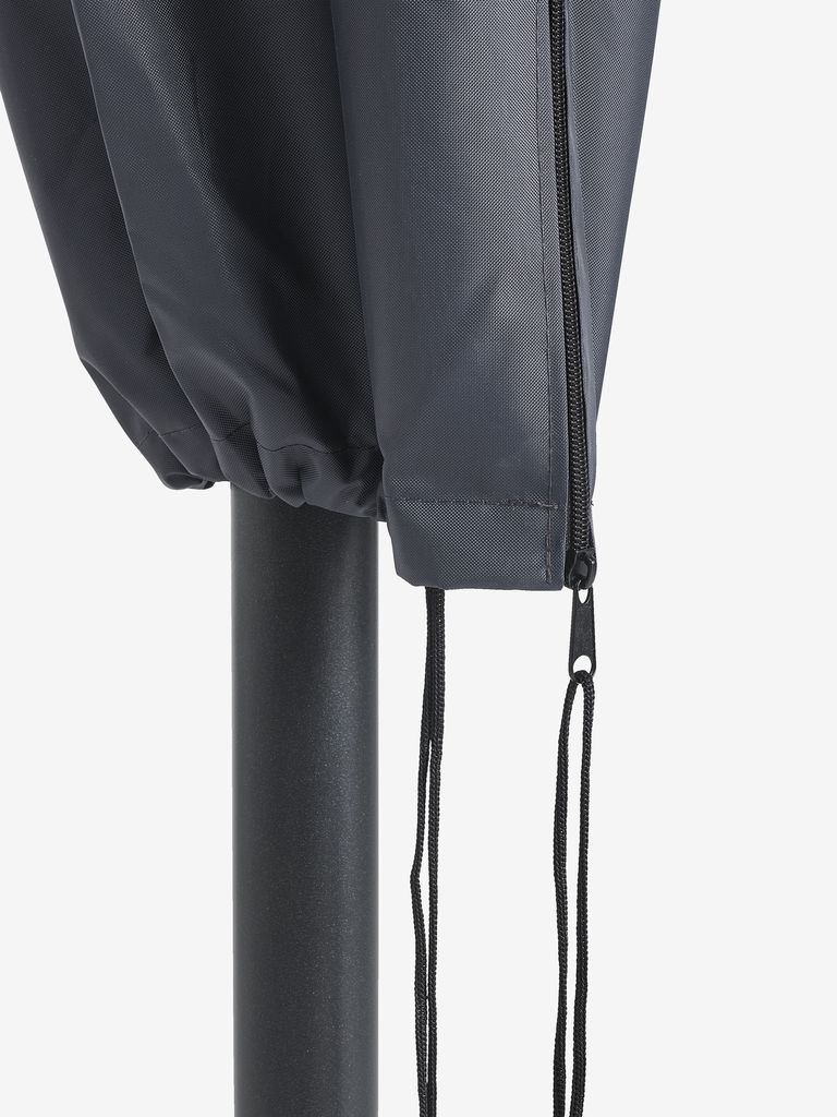 Husă umbrelă gri închis din poliester. Această husă impermeabilă și rezistentă la îngheț îți protejează umbrela de vremea rea, asigurându-i durabilitate îndelungată. Se potrivește majorității umbrelelor și include un fermoar și șnur. Ø30x180 cm
