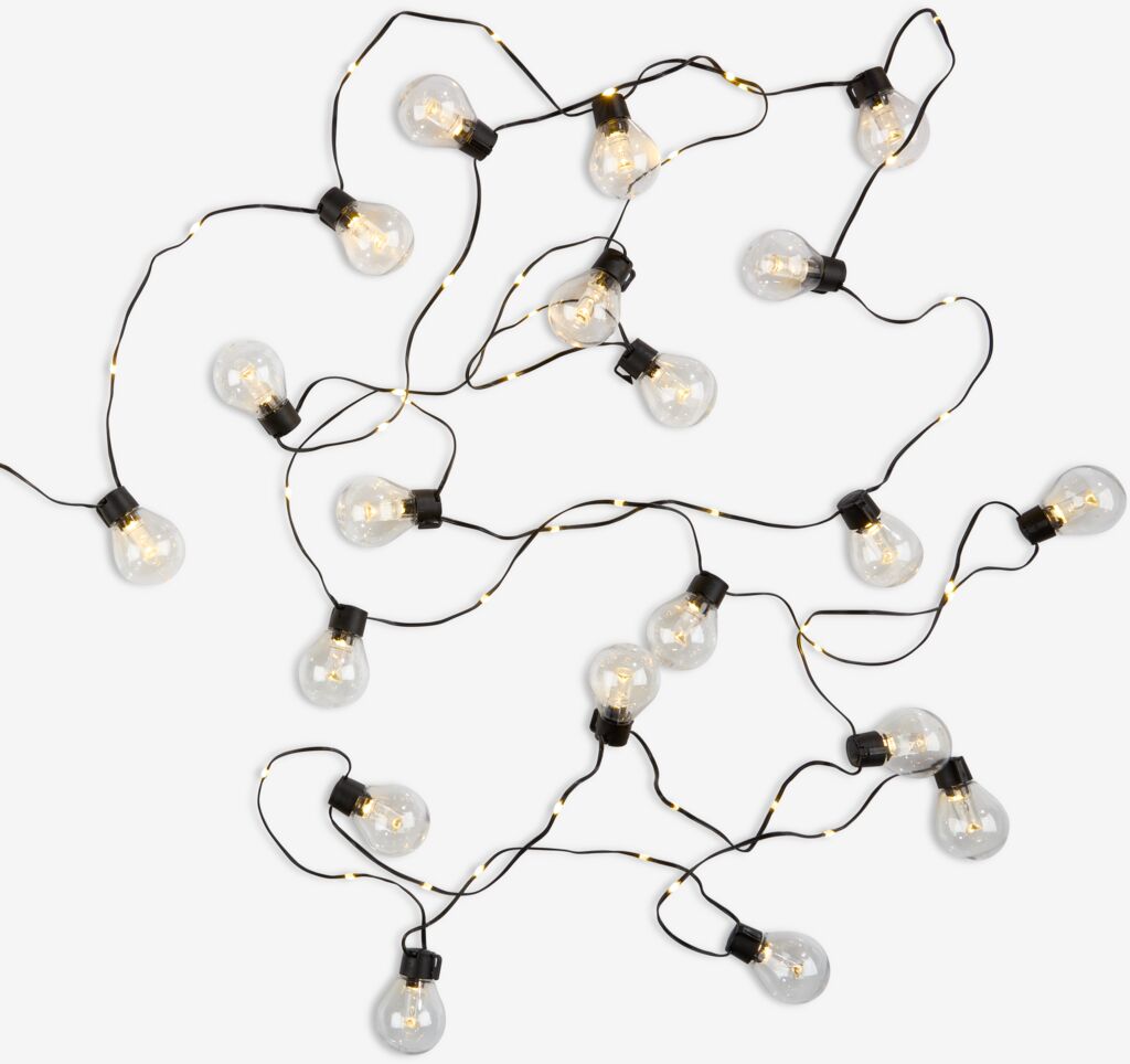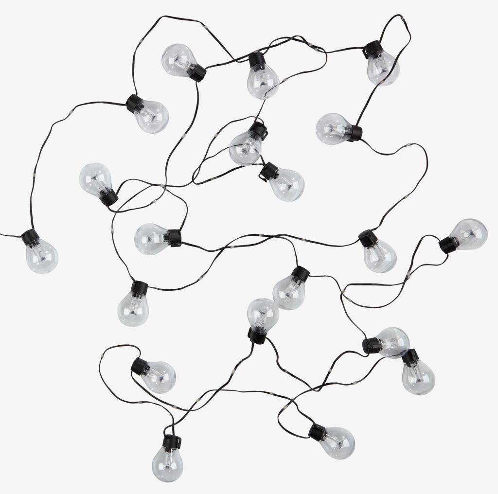 Instalație lumini exterior cu 20 de becuri transparente, care creează o atmosferă caldă și primitoare pentru grădina sau terasa dumneavoastră. Instalația este alimentată de la o priză electrică. 1100 x Ø6 cm