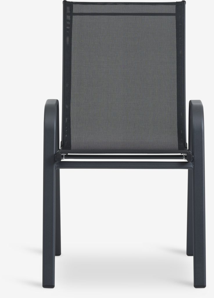 Set de grădină cu 4 locuri. Masă: Oțel și lemn artificial. 90x149x74 cm Scaun: Plastic cu protecție UV (20% reciclat). Stivuibil