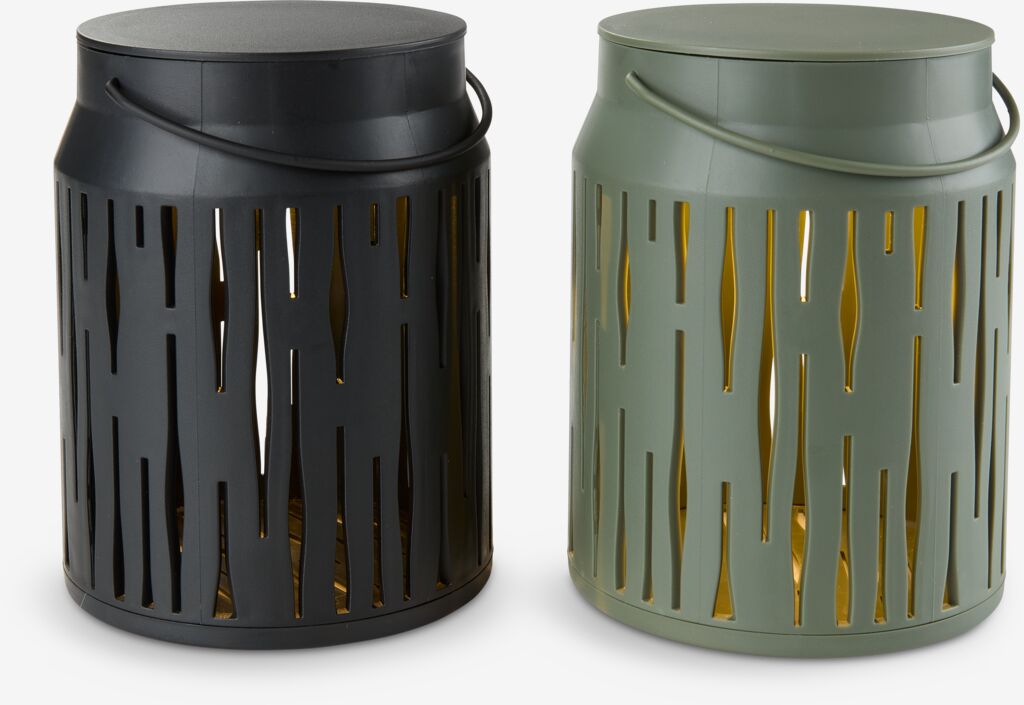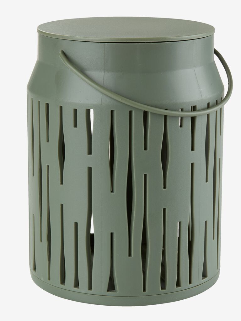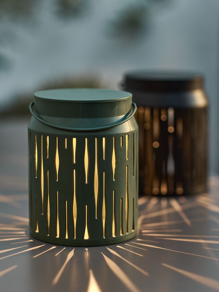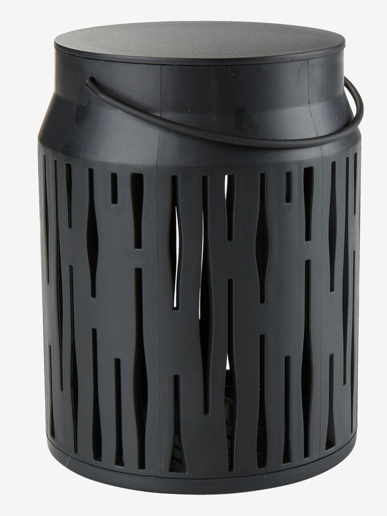 Felinar realizat din oțel vopsit electrostatic, cu un design modern, perforat. Când este aprins, creează un joc frumos de lumini. Dimensiunea sa compactă și mânerul îl fac ușor de amplasat în grădină sau în casă. Disponibil în culori variate și vândut individual. Ø8 x H10 cm