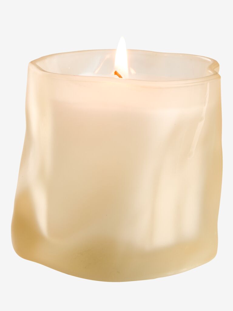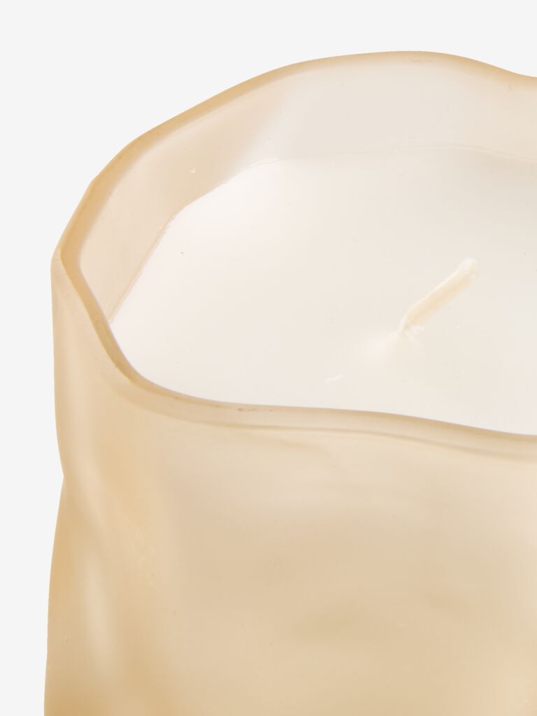 Lumânare parfumată într-un recipient de sticlă bej cu un design modern, ondulat. Lumânarea oferă o aromă liniștitoare pentru casa ta timp de până la 20 de ore. Ø8x8 cm