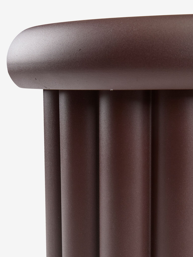 Măsuță cu design canelat, de culoare mov. Realizată din oțel galvanizat, este potrivită pentru grădina, terasa sau balconul tău. Ø39x45 cm