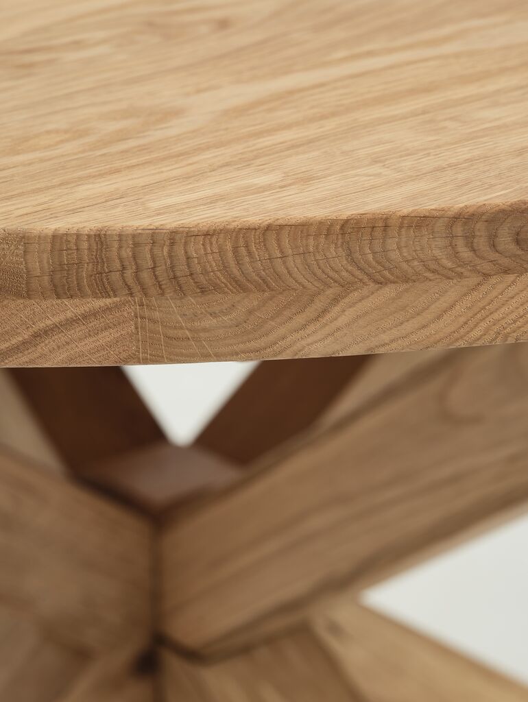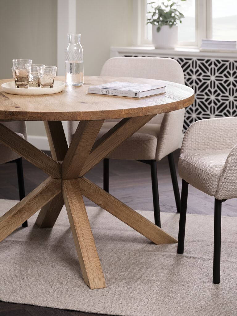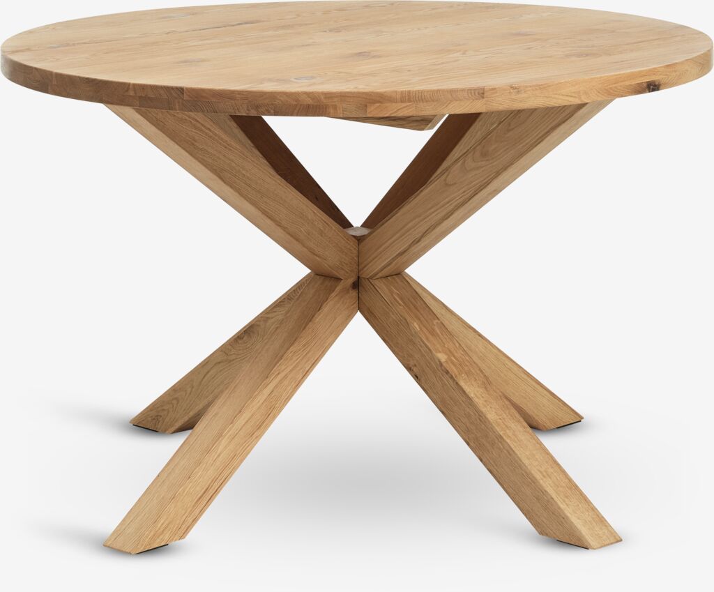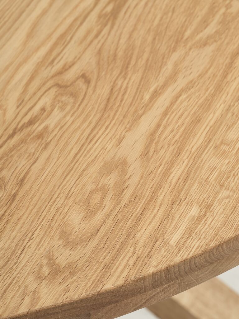 Masă de dining rotundă din lemn masiv de stejar. Lemnul este tratat cu ulei pentru a-i proteja culoarea naturală. Ø120x75 cm