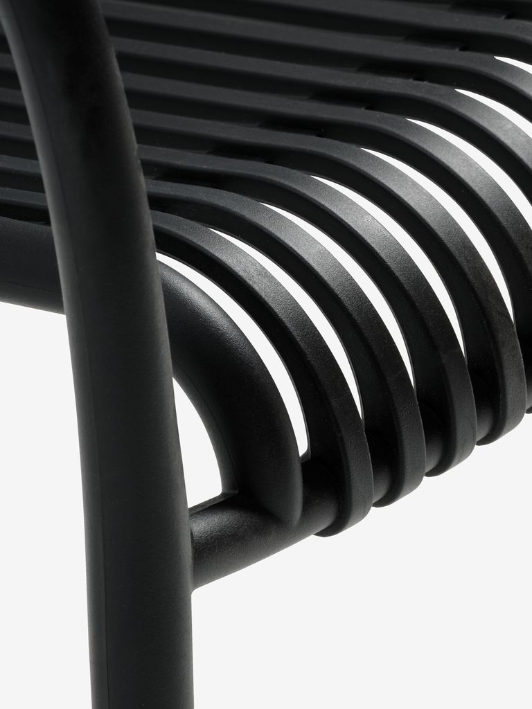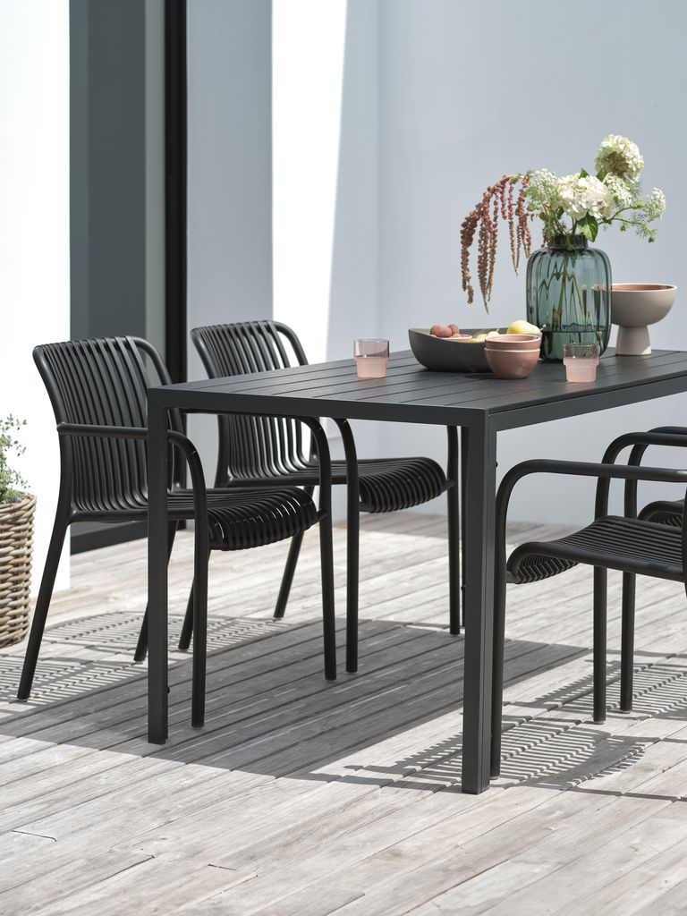 Set de grădină cu 4 locuri. Masă: Aluminiu și lemn compozit DURAWOOD®. 95x207x75 cm Scaun: Plastic cu protecție UV (20% reciclat). Stivuibil