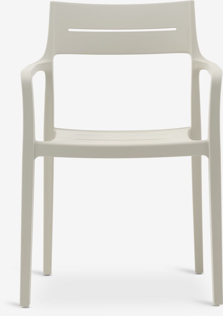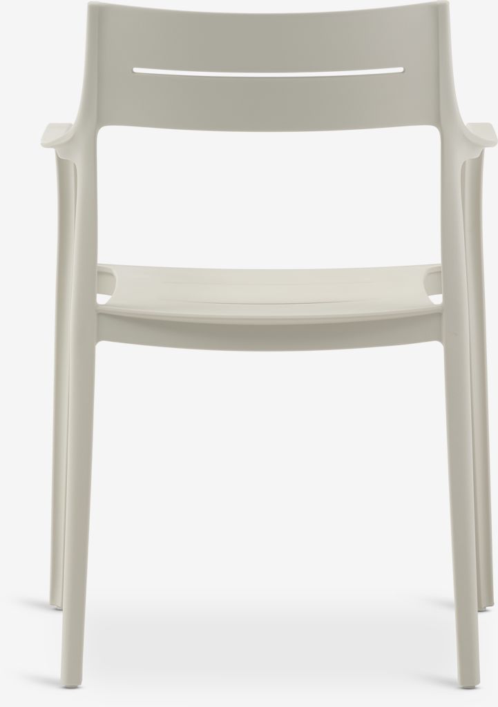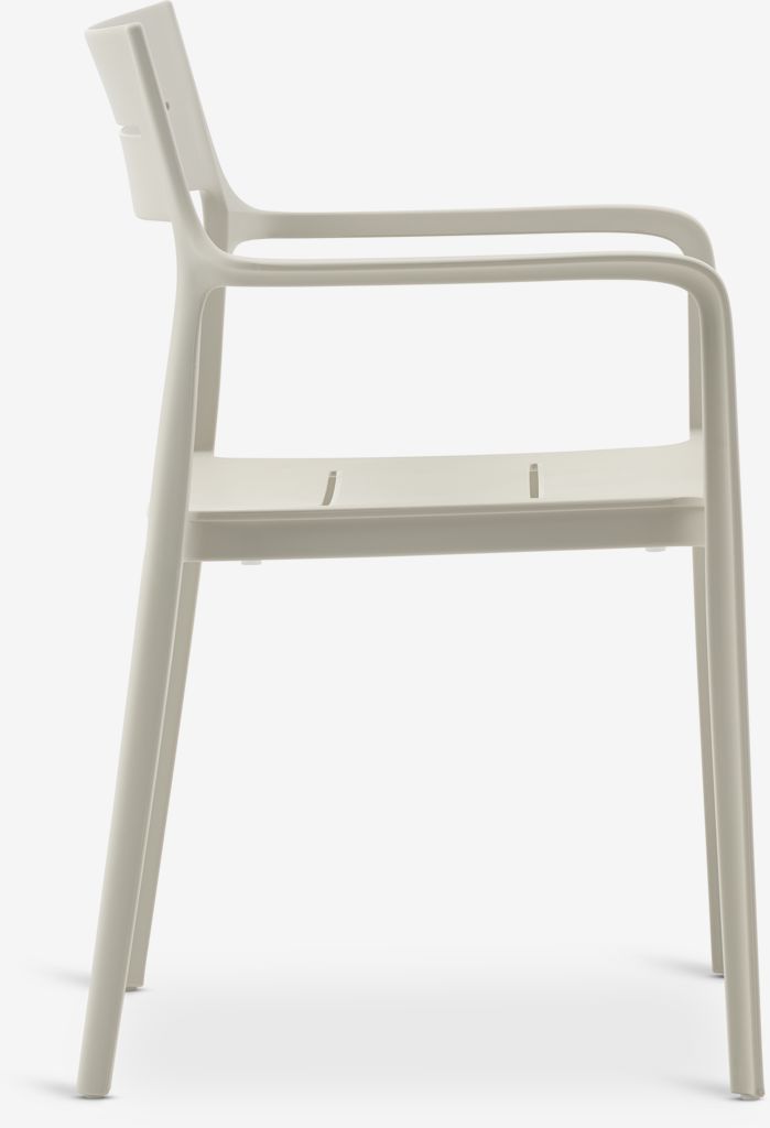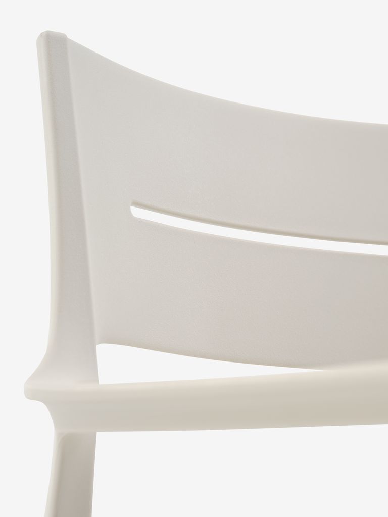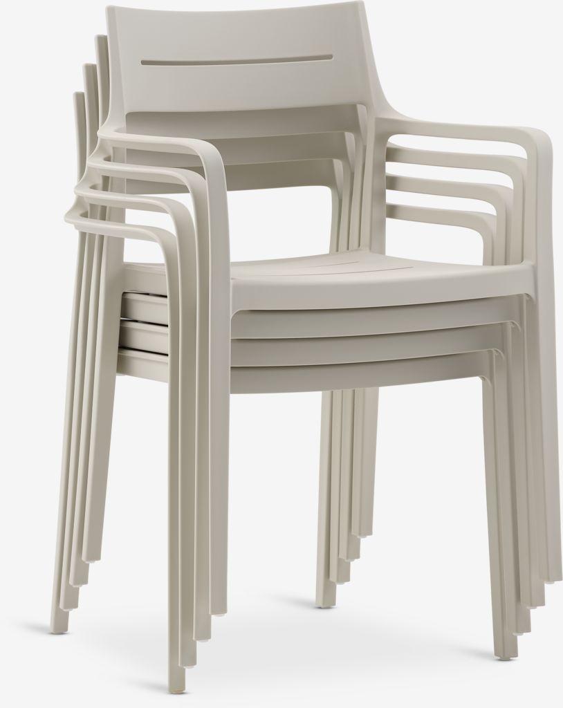 Set de mobilier de grădină cu 4 locuri. Masă: Oțel și ciment. Ø120x74 cm Scaun: Plastic cu protecție UV (20% reciclat). Stivuibil