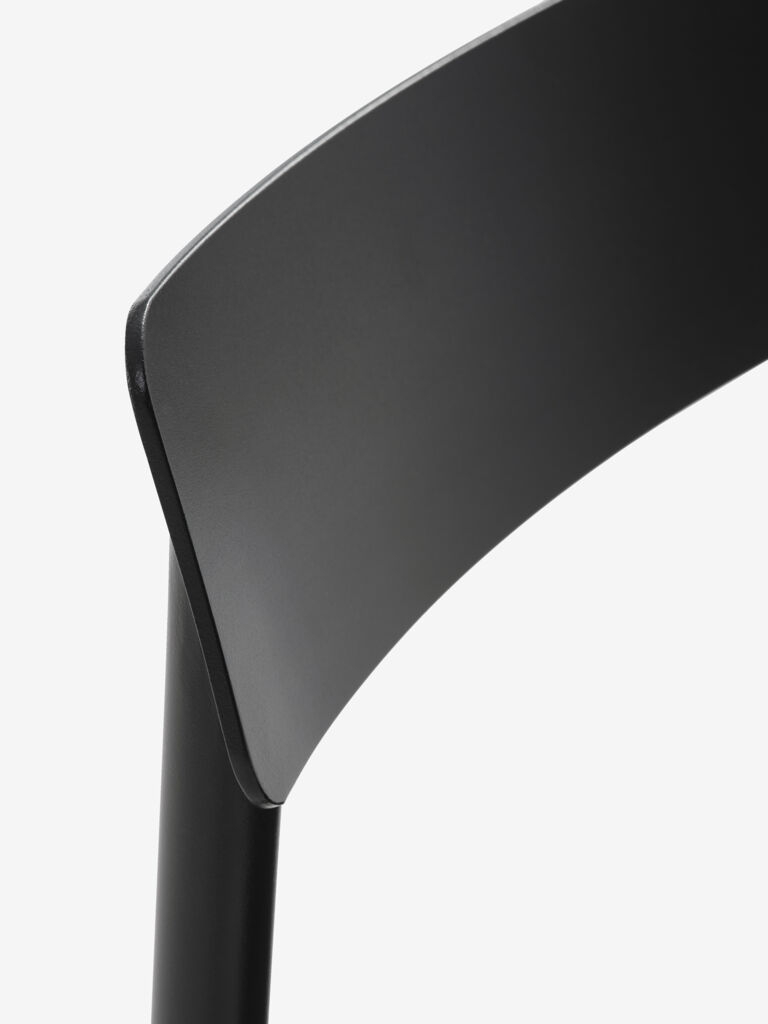 Set de mobilier de grădină cu 4 locuri. Masă: Oțel și ciment. Ø120x74 cm Scaun: Plastic cu protecție UV (20% reciclat). Stivuibil