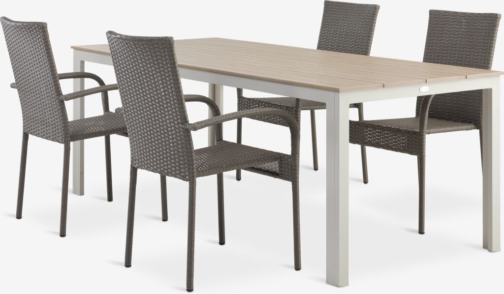 Masă MARIELYST 205 bej+4 scaune GUDHJEM natur