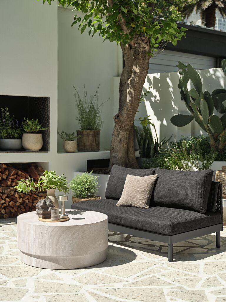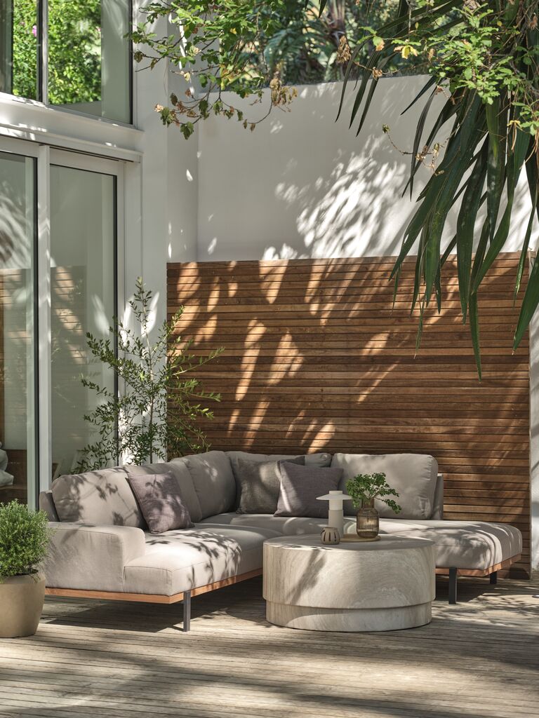 Modul masă pentru set modular de terasă. Aluminiu și lemn de esență tare FSC®, tratat cu ulei. 75x75x30 cm
