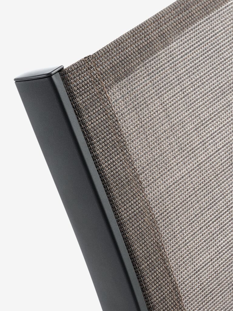 Set de grădină cu 4 locuri. Masă: Aluminiu și lemn de esență tare FSC®, tratat cu ulei. 91x149x75 cm Scaun: Aluminiu, textilină și lemn de esență tare FSC®, tratat cu ulei. 6 poziții. Pliabil.