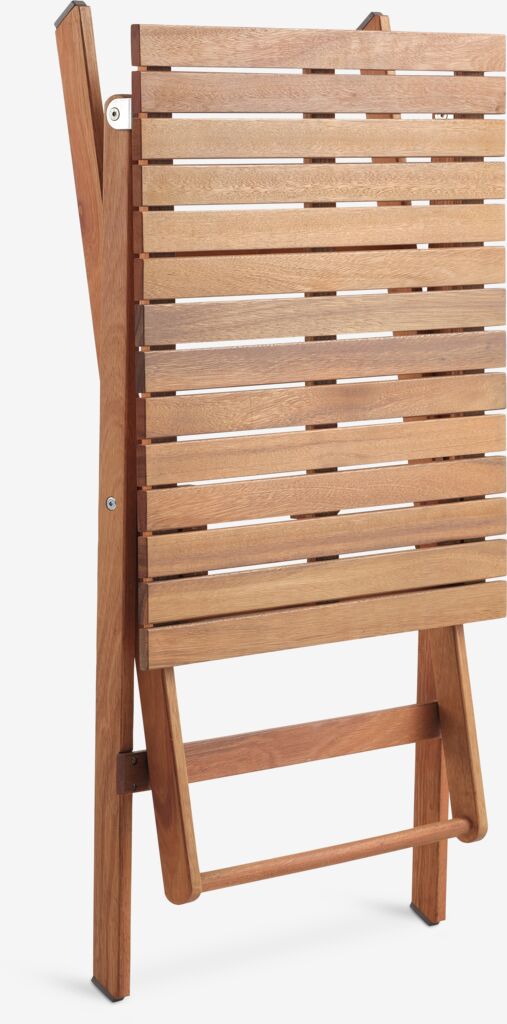 Set de terasă cu 2 locuri. Masă: Lemn de esență tare FSC®, tratat cu ulei. Pliabilă. 62x62x74 cm Scaun: Lemn de esență tare FSC®, tratat cu ulei. Pliabil.