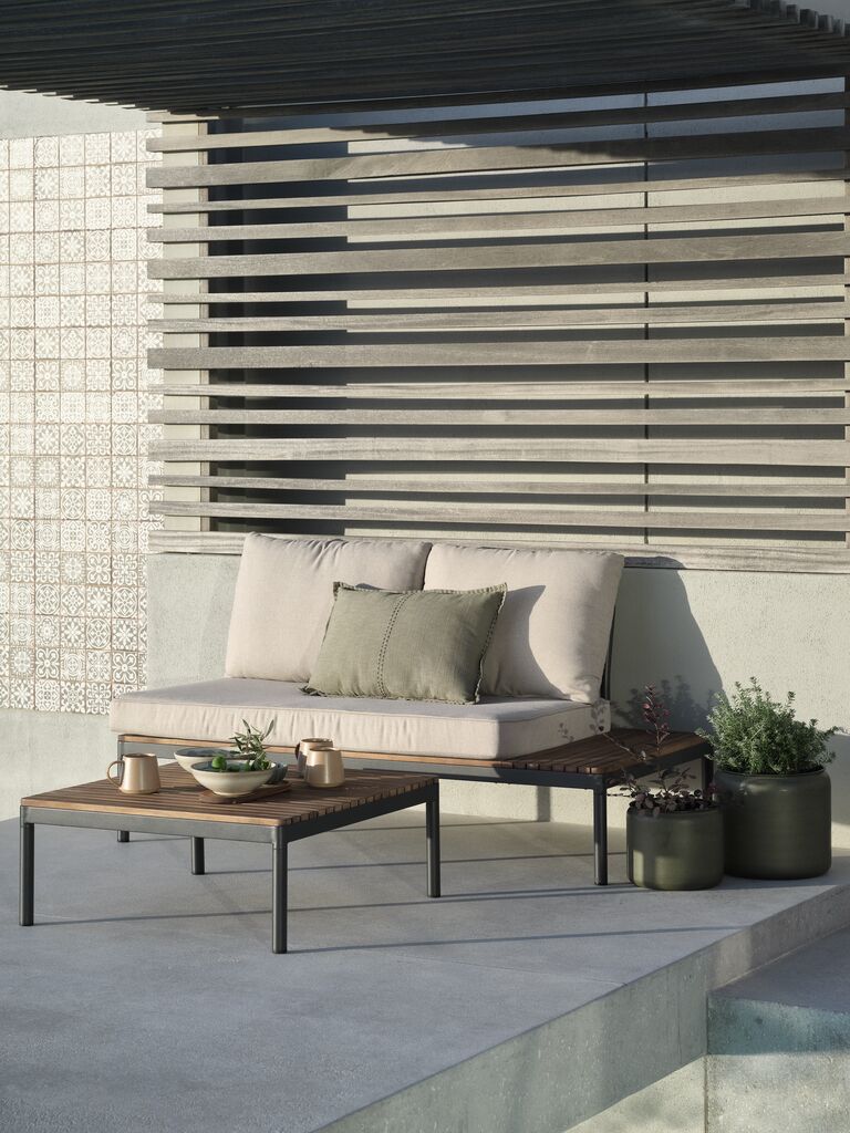 Modul canapea cu 2 locuri pentru set de terasă modular. Aluminiu și lemn de esență tare FSC®, tratat cu ulei. Modul canapea 2 locuri pentru set modular de terasă. Incl. perne de lux cu husă rezistentă, țesută. Poate fi inversat. 153x72x85 cm